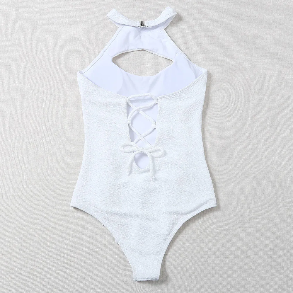 Женский купальник, сексуальный белый однотонный бандажный Монокини на шнуровке, лифчик и бикини, комплект нижнего белья, бикини