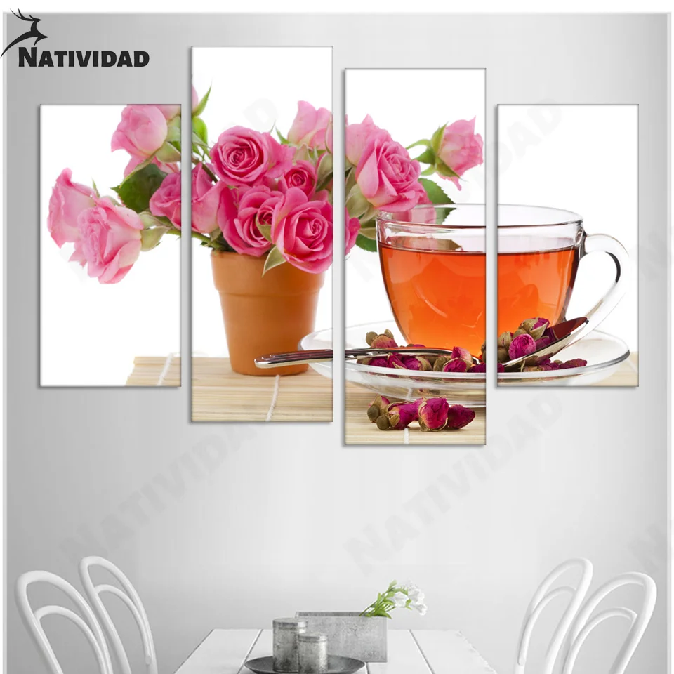 Фотография розовых цветов в горшках растений, Настенная картина на холсте, печать розы, чай, постер для спальни, гостиной, настенное художественное украшение