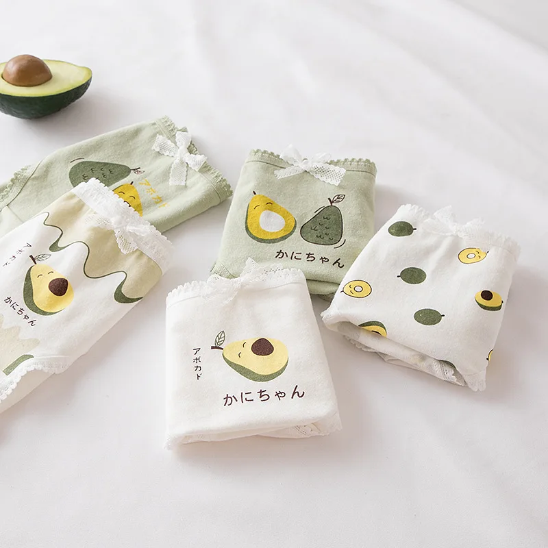 Трусы женские из хлопка и спандекса, модное мягкое нижнее белье, дышащие, со средней талией, в японском стиле, с рисунком авокадо