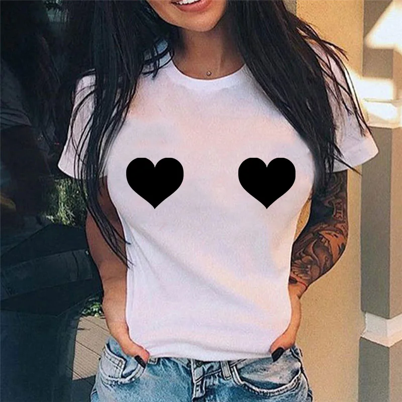 Новая женская футболка с забавным принтом груди, Повседневная футбо...