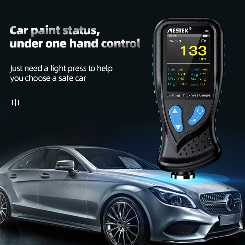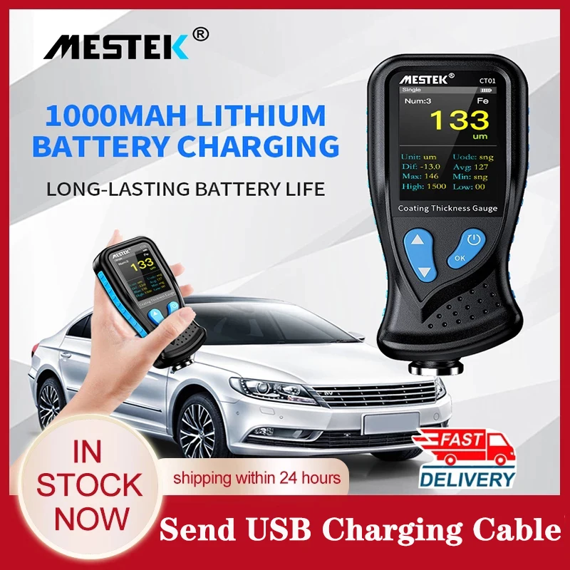 Измеритель толщины покрытия, прибор для измерения толщины лакокрасочного покрытия автомобиля, с USB зарядкой, ЖК-экраном