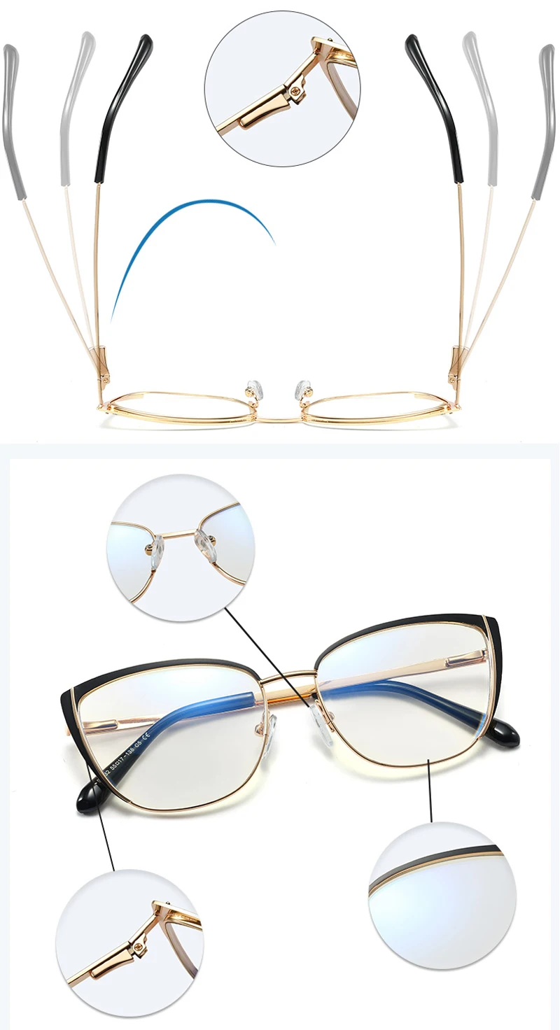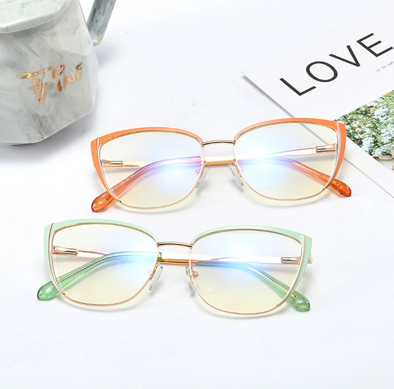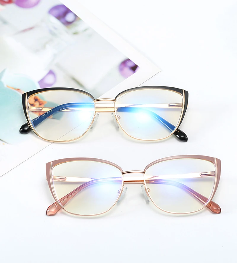 Kachawoo синий светильник, светофильтр, очки для женщин, металлический кошачий глаз, Женские оправы для очков, оптические прозрачные линзы, розовые, черные, женские Украшения