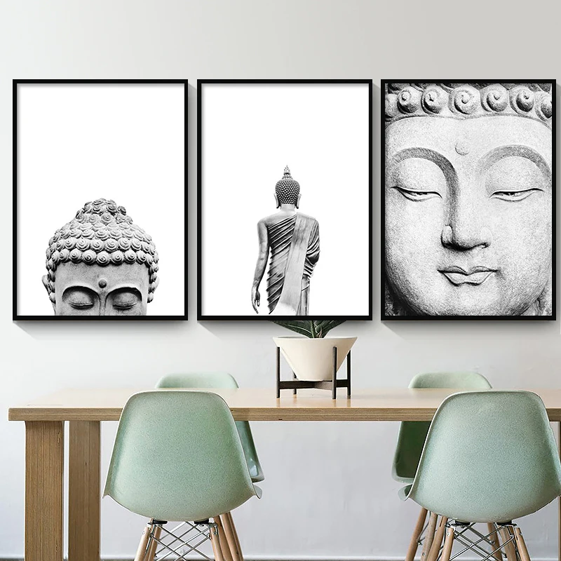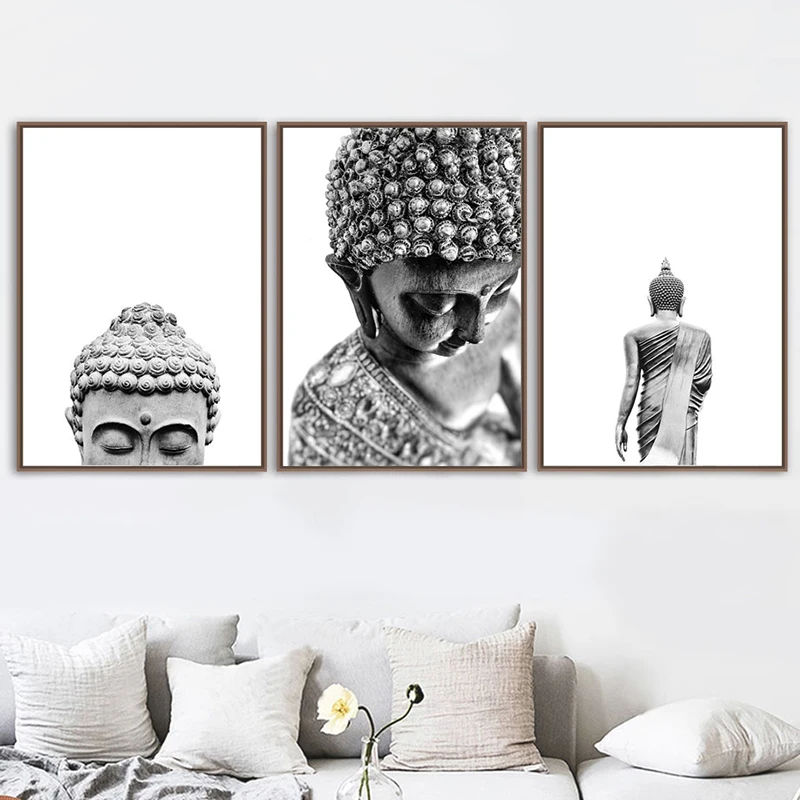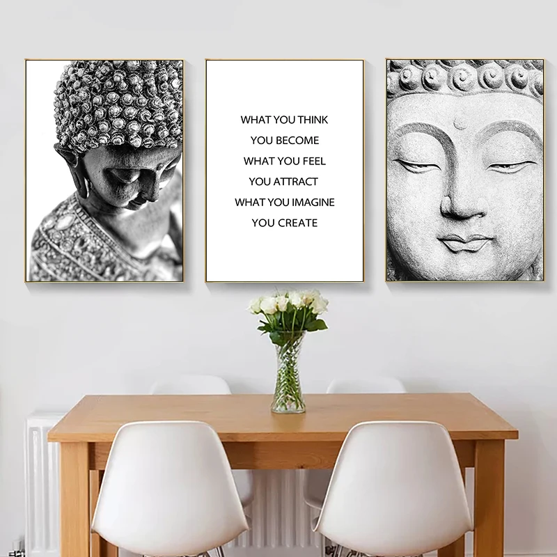 Статуя Будды Шакьямуни Qoutes, настенная живопись на холсте, черно-...