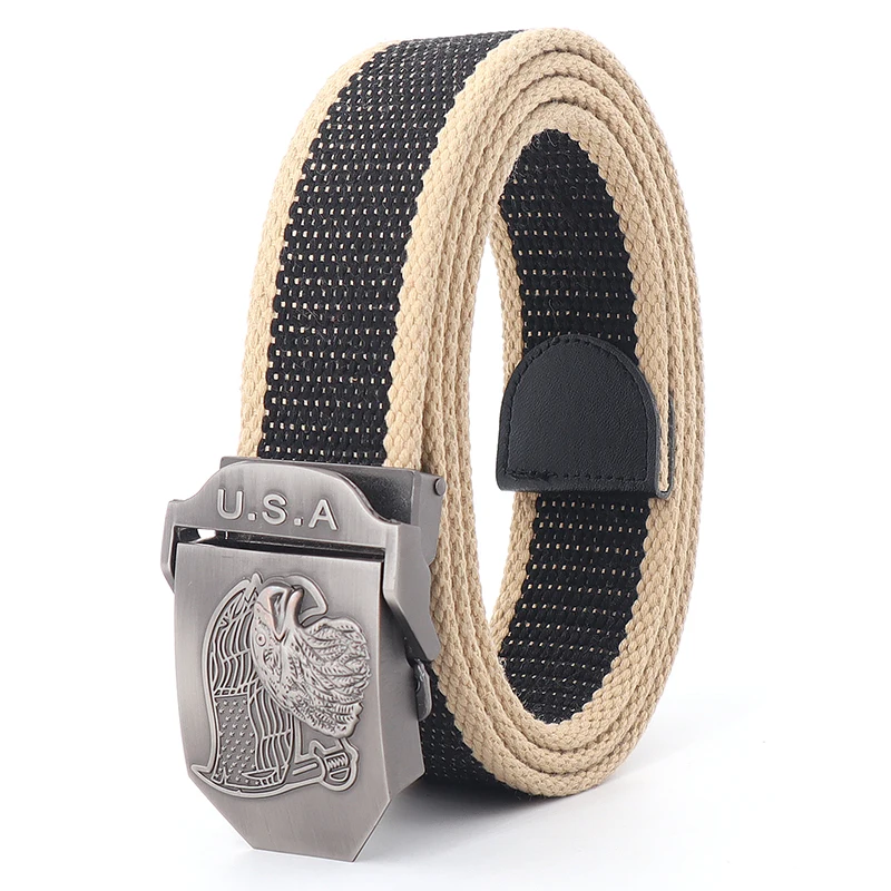 Ремень Flying Art с американским флагом и орлом Мужской и Женский, гладкий брезентовый ремень из толстого хлопка с автоматической пряжкой, из денима