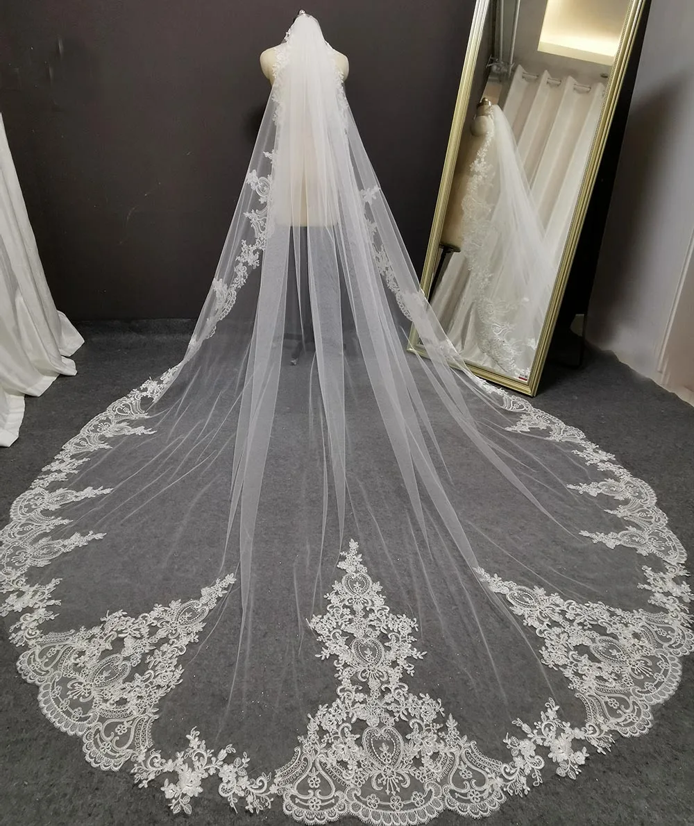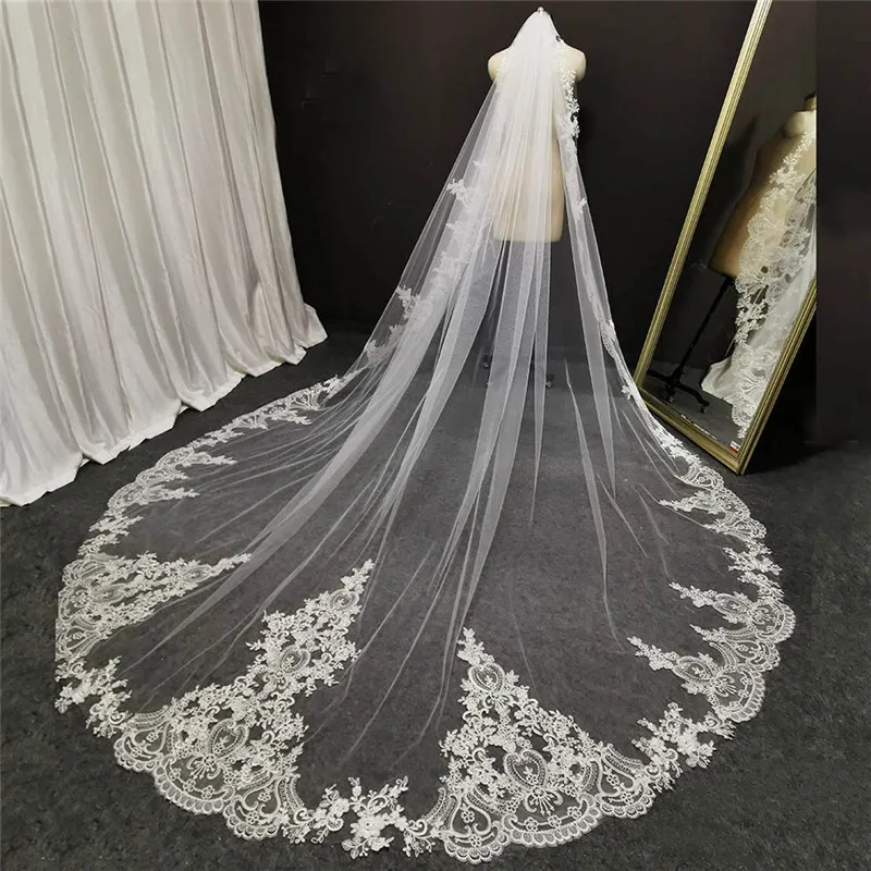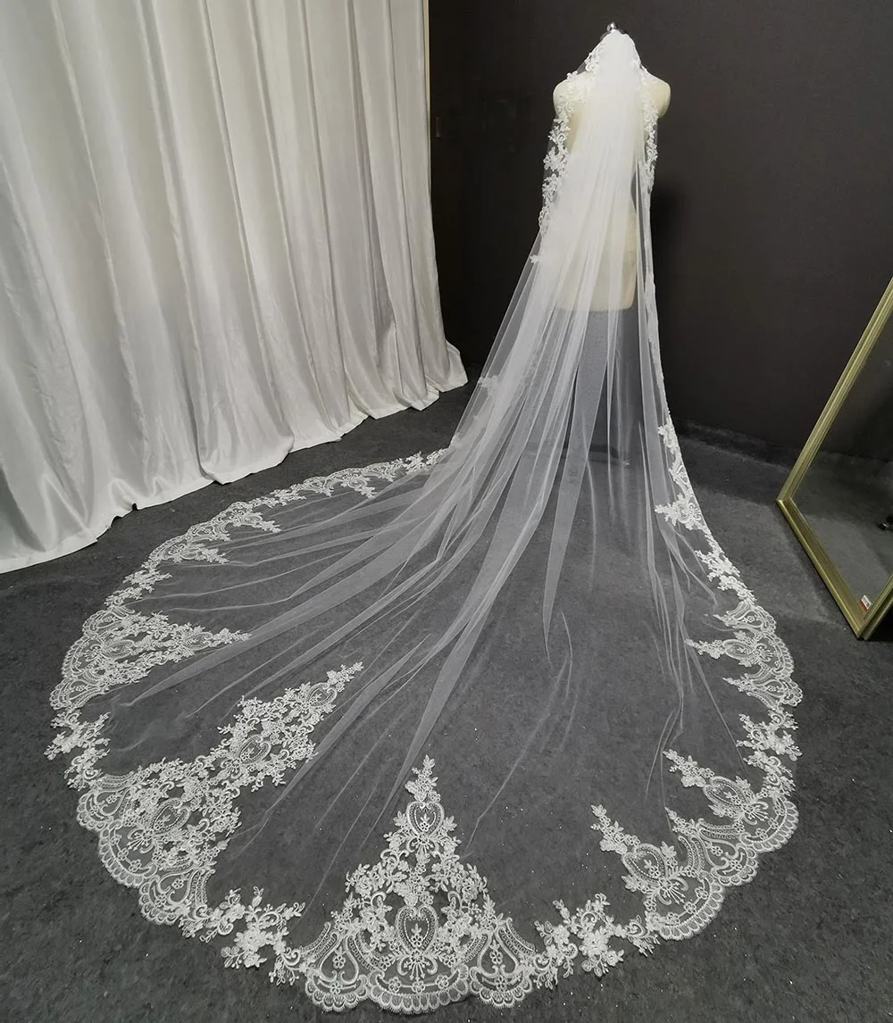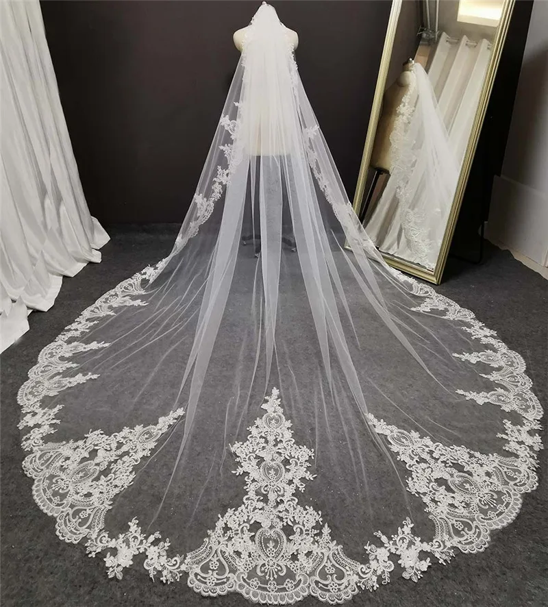 Роскошный длинный кружевной вуаль с расческой, 4 метра