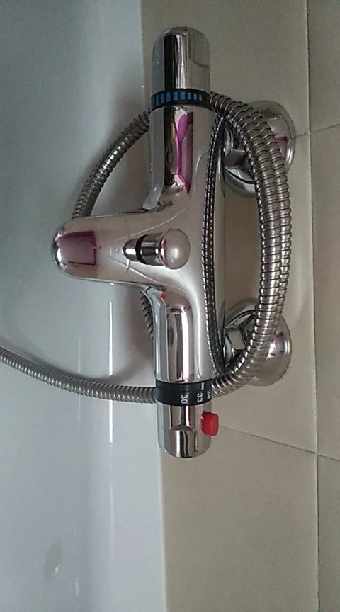 Особенности:-100% Новинка и высокое качество.-Термостатический кран для воды в ванной.-Умеренный тест солевого спрея в течение 24 часов.-Твердая латунь H59, выполненная с хромированным покрытием.-С носиком для ванны и дивертором воды.-Безопасная конструкция с температурой воды 38 ℃, более безопасная для пожилых людей и детей.-Установочное расстояние отверстия составляет 150 мм, регулировка от 13-17 см.-Красный для горячей воды, синий для холодной воды.-Температура холодной воды: 8-29 °C-Температура подачи горячей воды: 55-85 °C-Диапазон температур выходной воды: 20-50 °C-Остановка безопасности: 38 °CОписание товара:-Материал: Медь H59-Клапан: керамический-Нижнее Соединение: 1/2''-Диаметр сиденья: 34 мм-Номинальное давление: 0,05-1.3мпа-Вес: 1535 гПосылка входит:Термостатический клапан для крана-1 шт., стандартные аксессуары и монтажные детали
