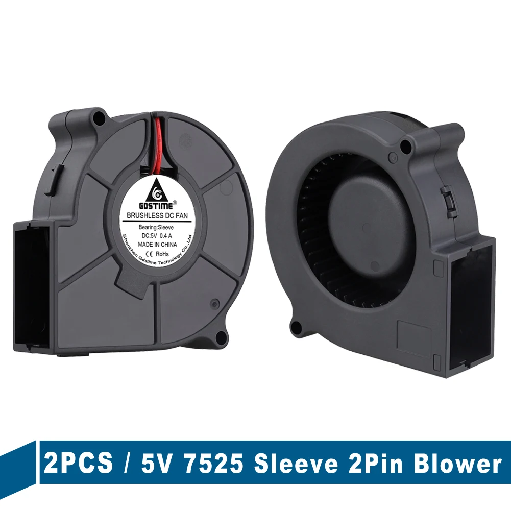 Вентилятор охлаждения, 75x75x25 мм, 2 шт., 5 в постоянного тока, центробежный Турбовентилятор 7525, 75*25 мм, 75 мм, радиатор, бесколлекторный вентилятор охлаждения, 2 контакта