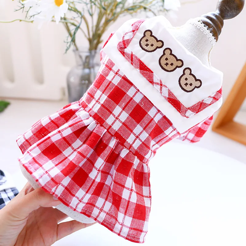 Футболки в клетку с матросским воротником для маленьких мальчиков и девочек, милые летние хлопковые костюмы для домашних животных, одежда Платья для кошек, товары для одежды