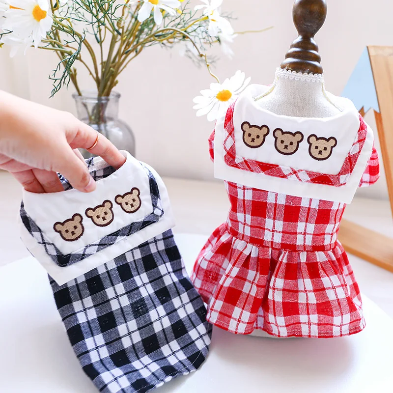 Матросский ошейник для девочек и мальчиков, простые футболки в клетку для маленьких щенков, хлопковый Милый Летний костюм для домашних животных, одежда, платья для кошек, одежда, товары