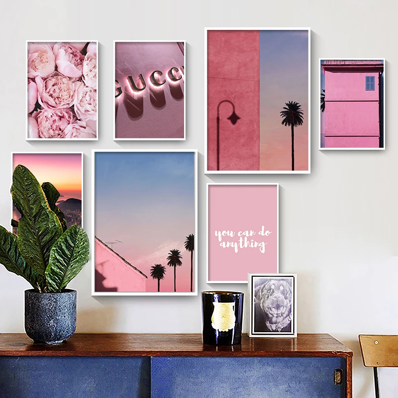 Настенные плакаты и принты в скандинавском стиле, настенная Картина на холсте с изображением розового города, цветка, легкой пляжной девушки, для декора комнаты для Grils icon star icon star icon star icon star icon star