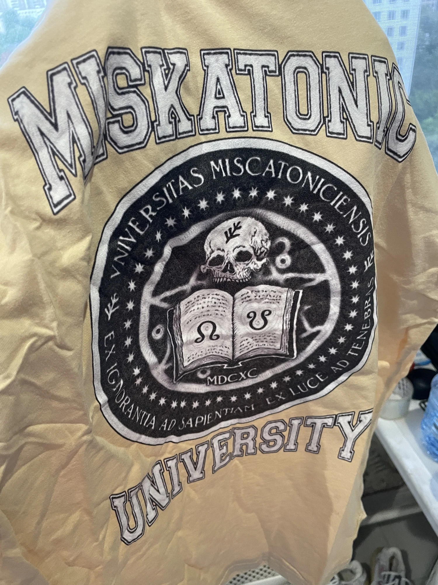 Miskatonic Университет Azhmodai футболки для мужчин 100% хлопковая футболка ктулху Лавкрафт короткий рукав взрослая футболка одежда
