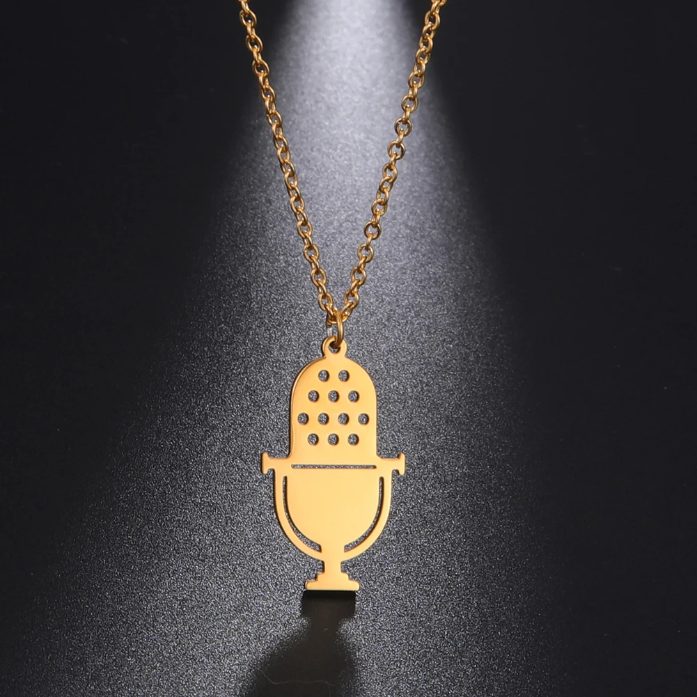 Fishhook Музыкальный барабан для микрофона певицы музыкальная гитара Рок-поп ожерелье цвета розового золота из нержавеющей стали подарок для женщин ювелирные изделия