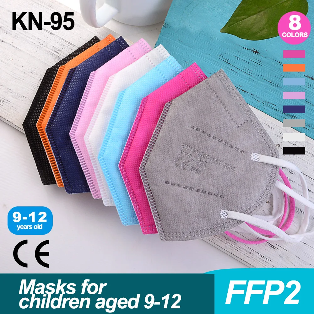 От 9 до 12 лет FFP2 маски детские, гомологические KN95, маска CE, цветная FFP2Mask, защитная маска для новорожденных FP2 FPP2