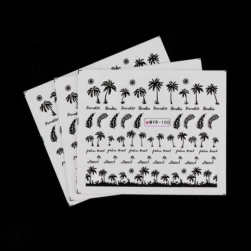 1/4 шт., тропический стиль, Летний Дизайн пальмы, наклейки для ногтей, кокосовое дерево, Переводные бумажные наклейки для ногтей «сделай сам», 3D декор для нейл-арта