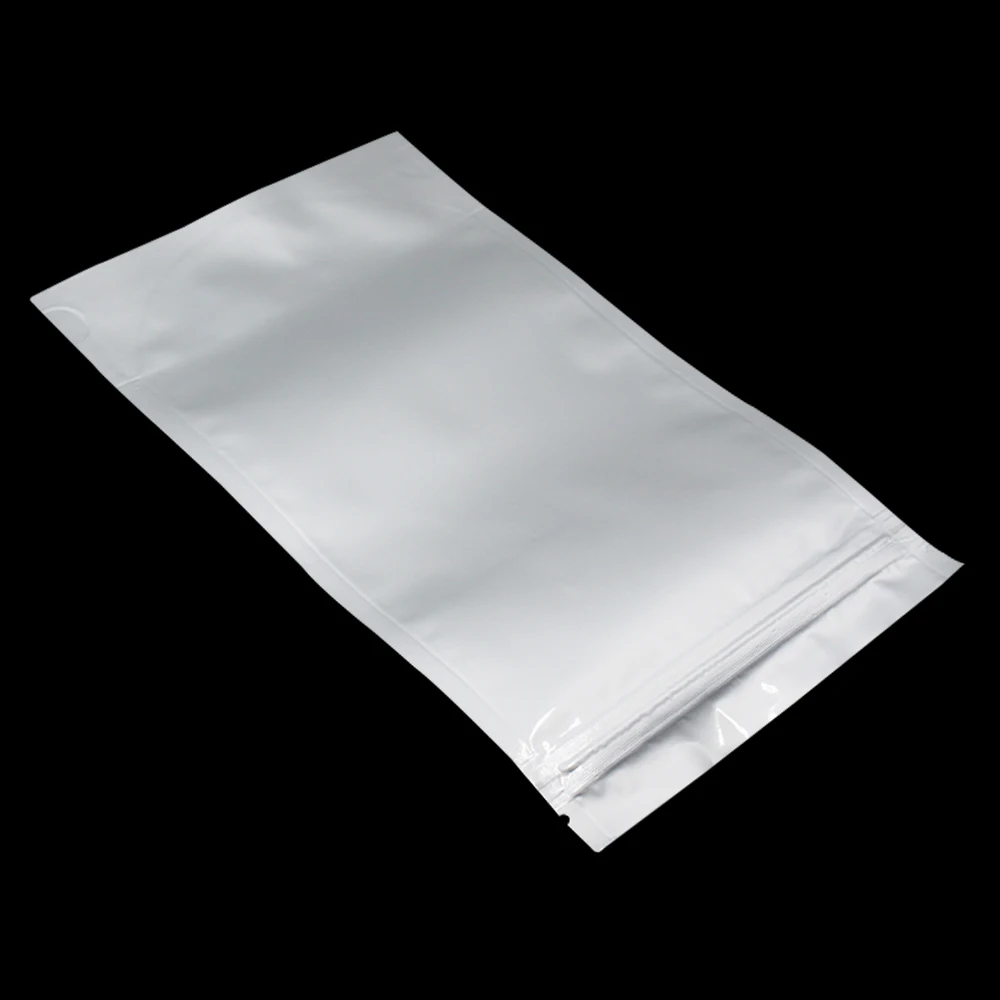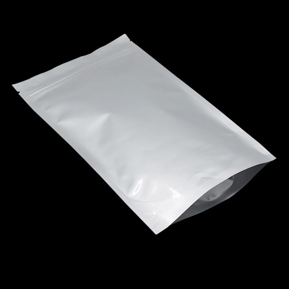 100 шт.лот стоячие пакеты для хранения продуктов Серебристые пакеты из чистой алюминиевой фольги с застежкой-молнией самозакрывающиеся пакеты для конфет кофе чая закусок пакет