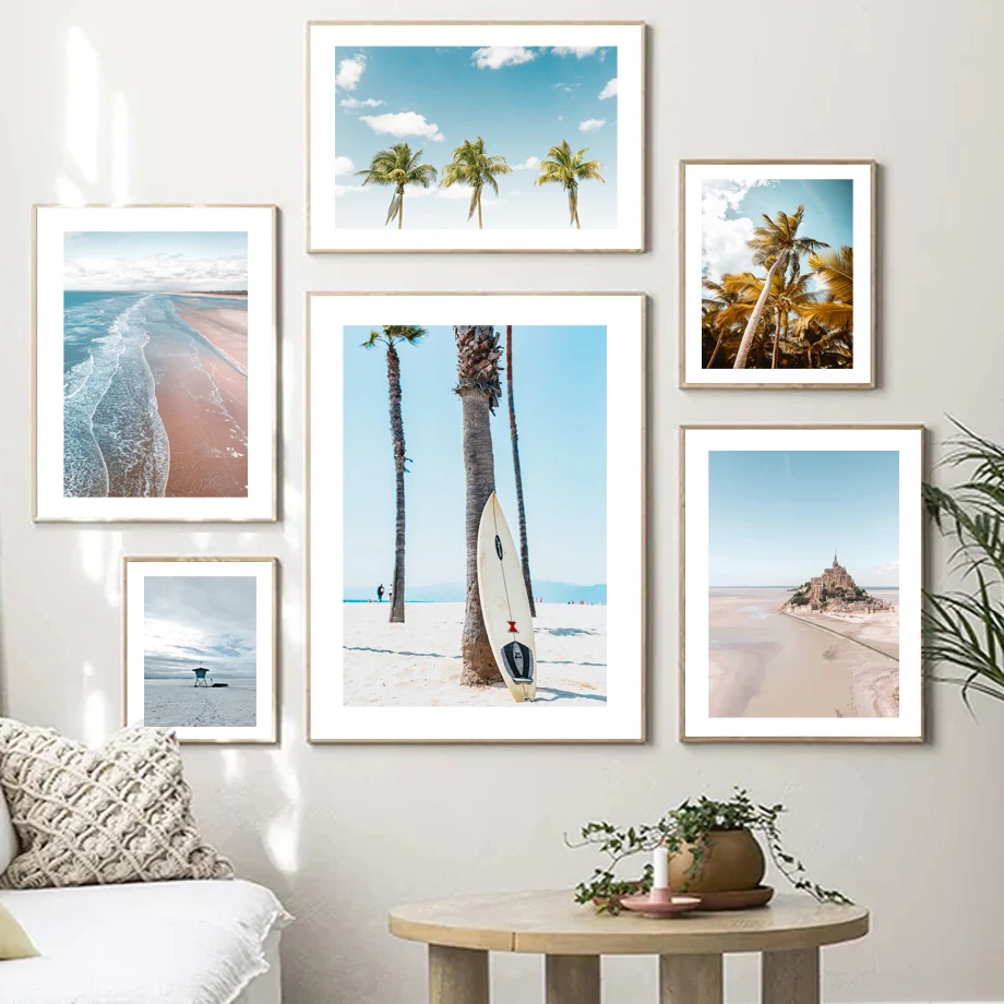 Пляжная доска для серфинга Монт-Сен-Мишелл, художественная живопись на холсте, скандинавские плакаты и принты, настенные картинки для декора гостиной