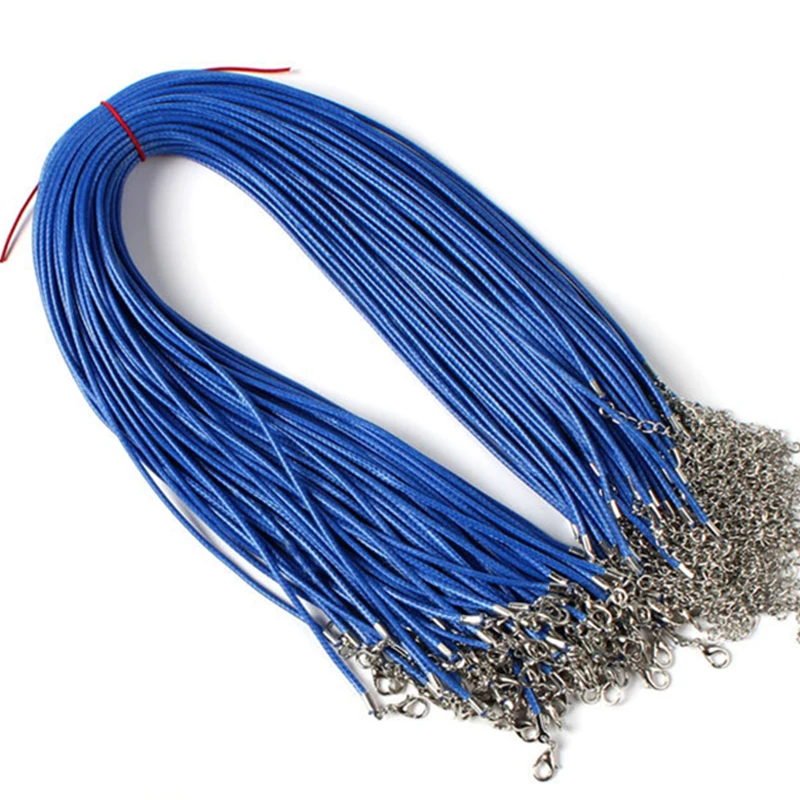 Хлопковый вощеный шнур, 2 мм, 20 шт., регулируемая плетеная веревка, цепочка для ожерелья с застежкой-лобстером, фурнитура для изготовления ювелирных изделий