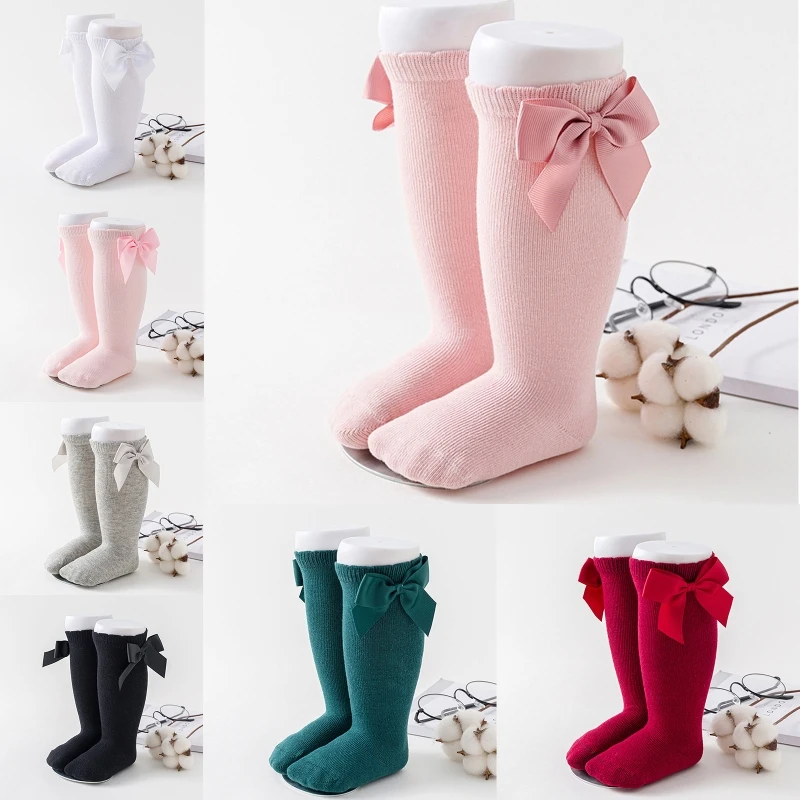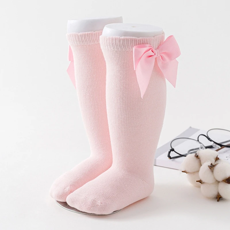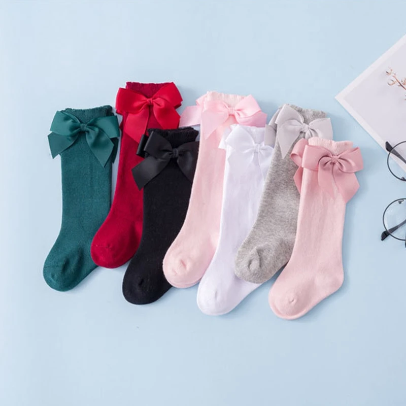 Детские носки для новорожденных и маленьких девочек, новые детские носки для детей ясельного возраста, для девочек, с большим бантом, высокие сапоги до колена, из мягкого хлопка, кружевные детские носки для девочек
