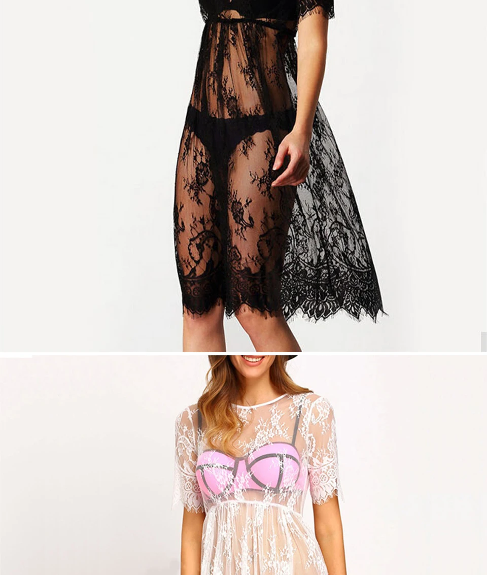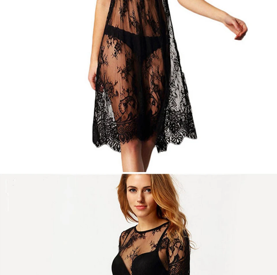 Женские летние кружевные платья, черное, белое прозрачное сексуальн...