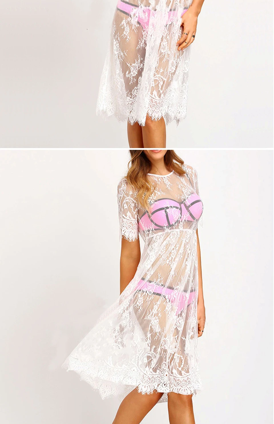 Сексуальное кружевное платье с круглым вырезом и коротким рукавом