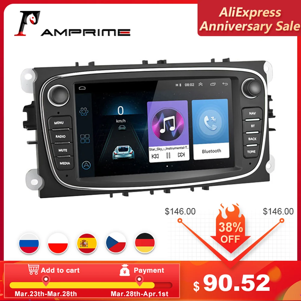 AMPrime Android 7 ''2Din автомобильный Радио сенсорный экран с FM GPS навигацией WIFI для Ford/Focus/S-Max/Mondeo/GalaxyC-Max