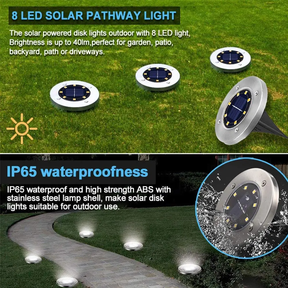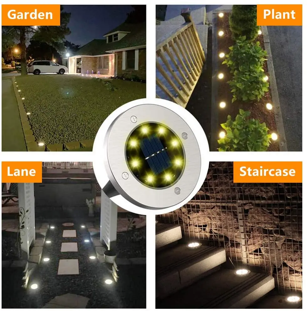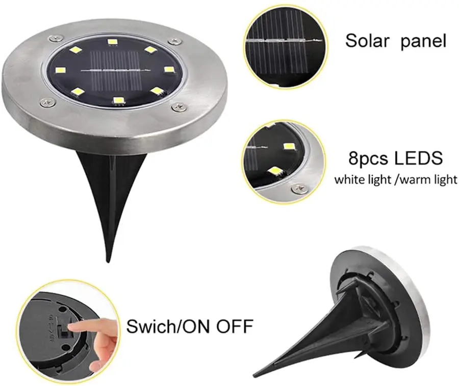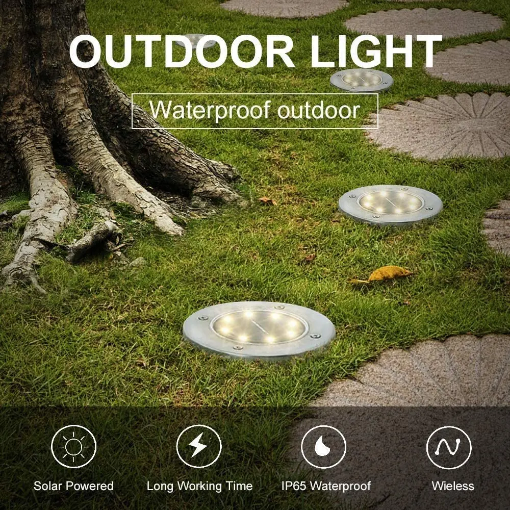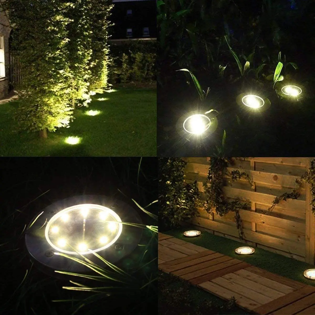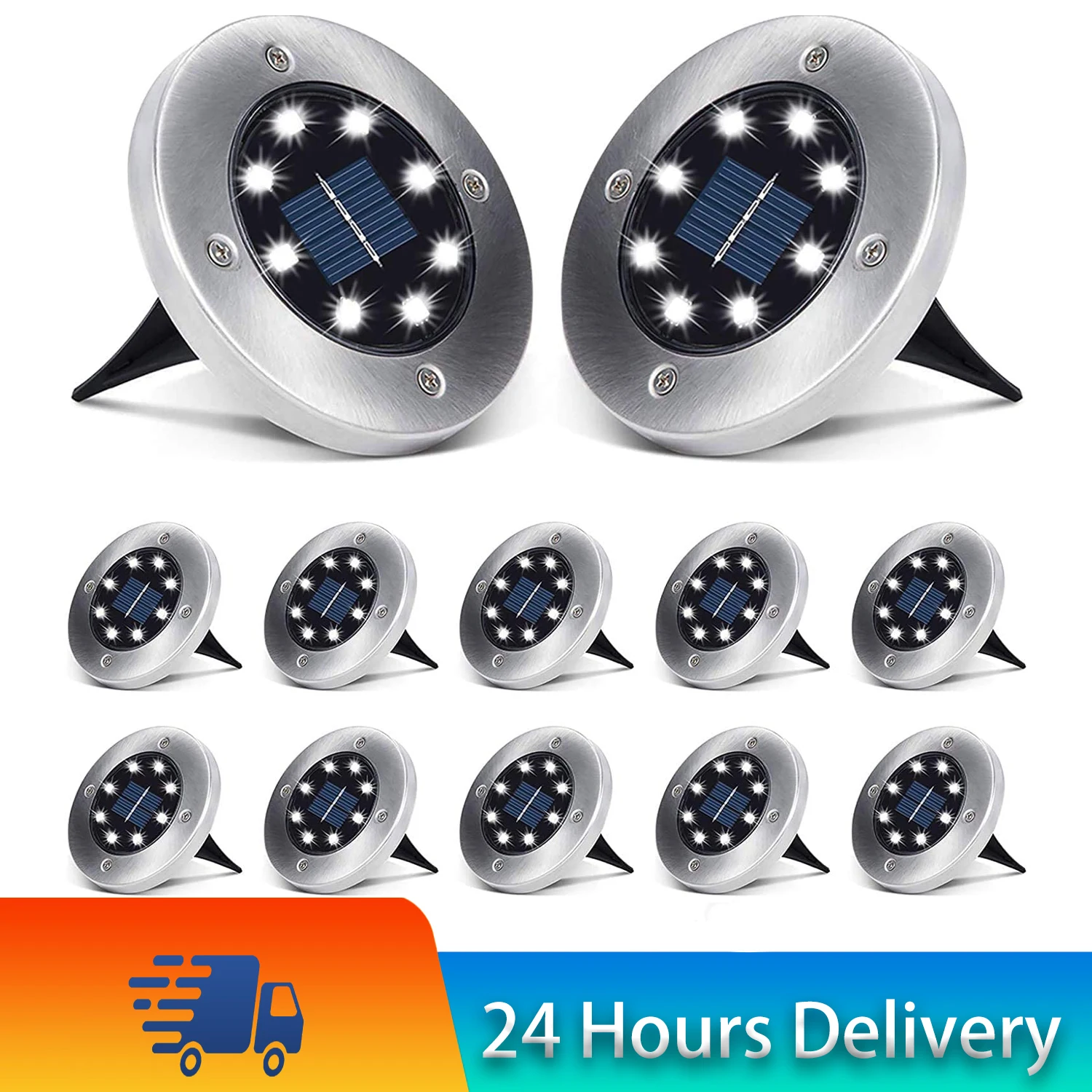 Светодиодные фонарики на солнечной батарее, водонепроницаемые уличные садовые подземные Ландшафтные фонари для двора, настила, газона, внутреннего дворика, дорожек, 8 светодиодный