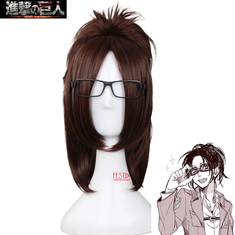 Атака на Титанов Hange Zoe длинный коричневый парик + Бесплатный парик шапка с очками