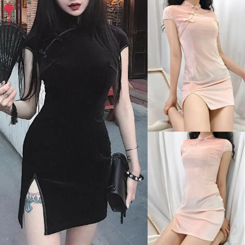 Женское платье в китайском стиле, готическое облегающее мини-платье...