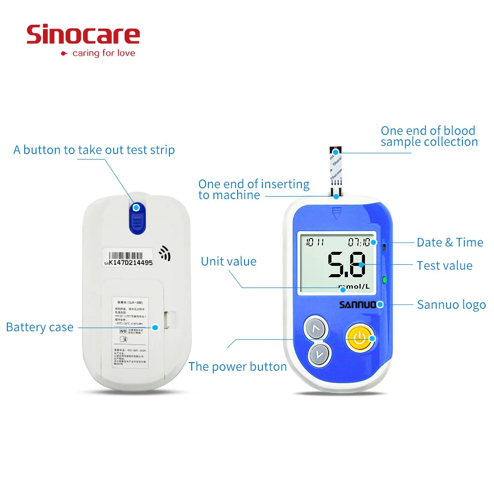Глюкометра Sinocare Safe Accu CE, медицинское устройство для измере...