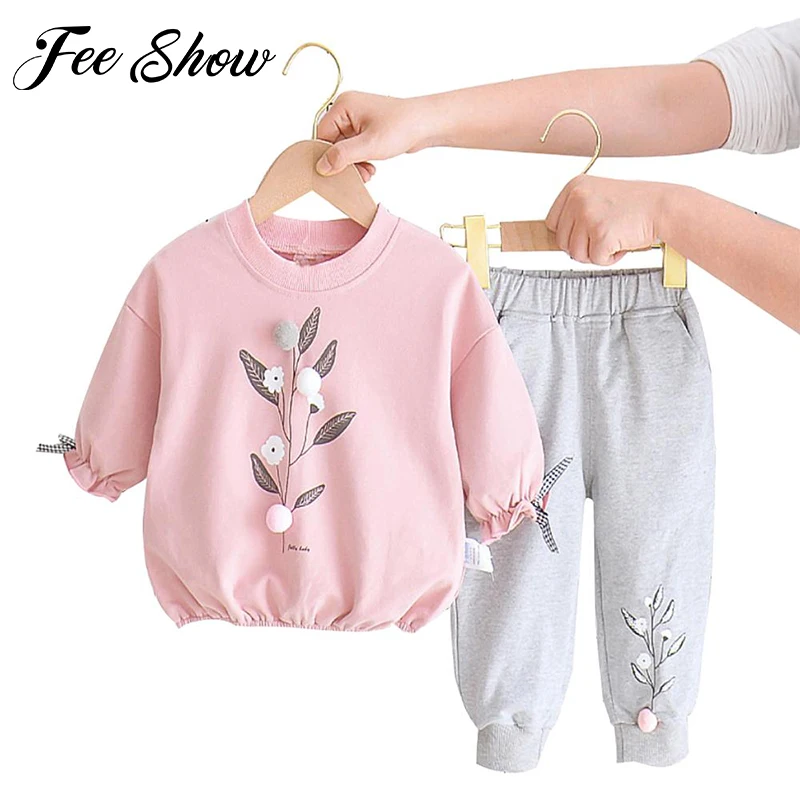 Весенняя одежда для новорожденных девочек, спортивный комплект, футболка и штаны, костюмы для маленьких девочек, одежда для малышей, комплекты для 1 года рождения малышей