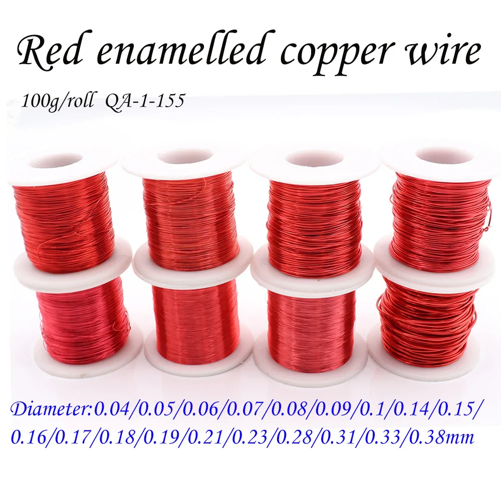 Красный Магнитный провод 0,04 мм-0,38 мм QA-1-155 эмалированный Медный провод магнитная катушка обмотки для электрической машины индуктивности 100 г