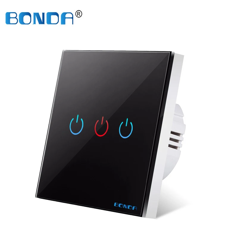 Настенный сенсорный выключатель BONDA, стандарт ЕС, Белый хрустальный светильник, выключатель 220 В переменного тока, 1-Сторонняя Кнопка настенного светильника, сенсорные выключатели