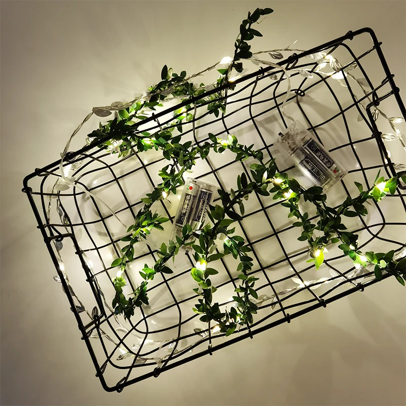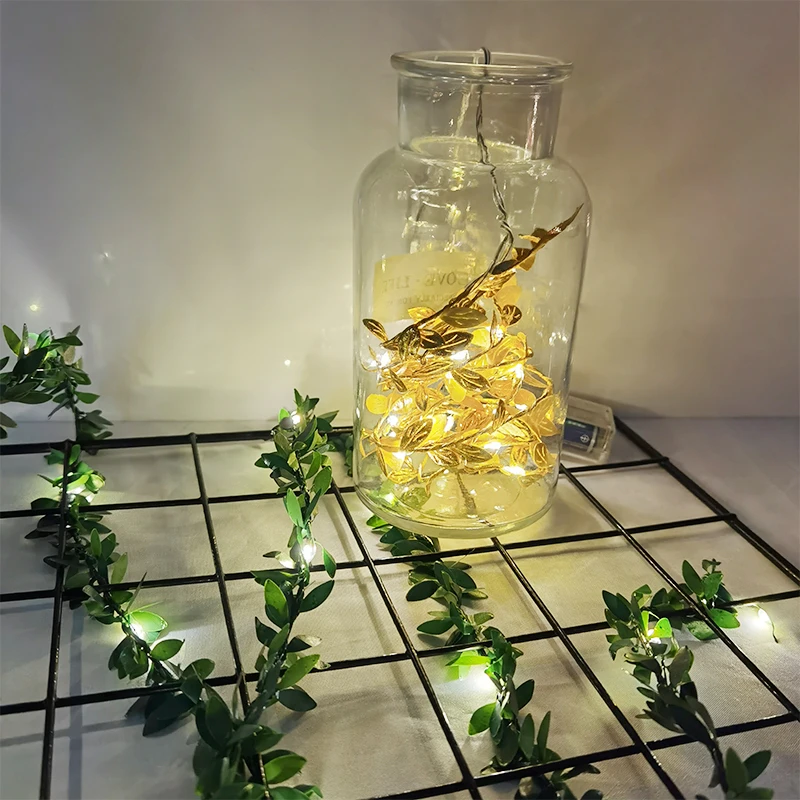 Гирлянда с искусственная Цветочная лоза из медного провода, Шелковый шнурок с листьями, сказосветильник для дома, свадьбы, дня рождения, вечеринки, 2 м, 20 светодиодов
