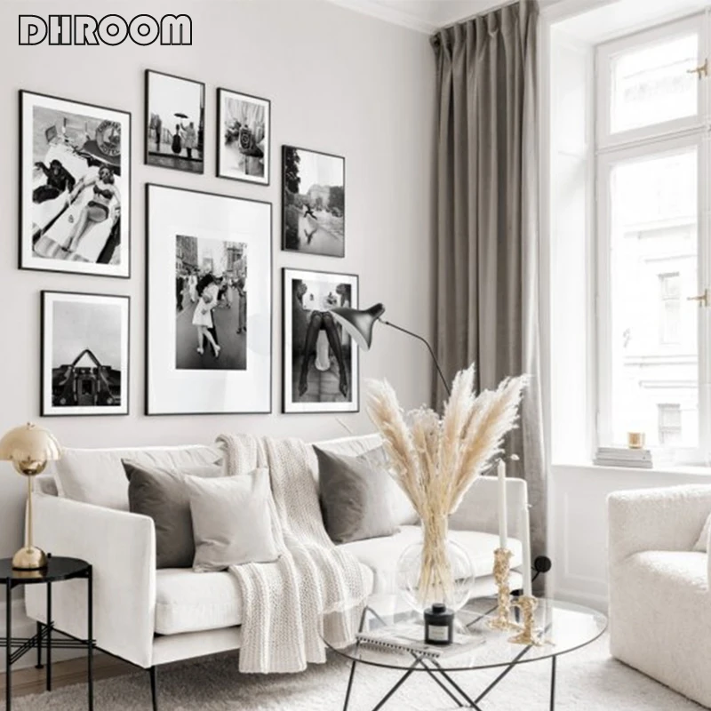 Черно-белый модный плакат, женское окно, фотография на холсте, совр...