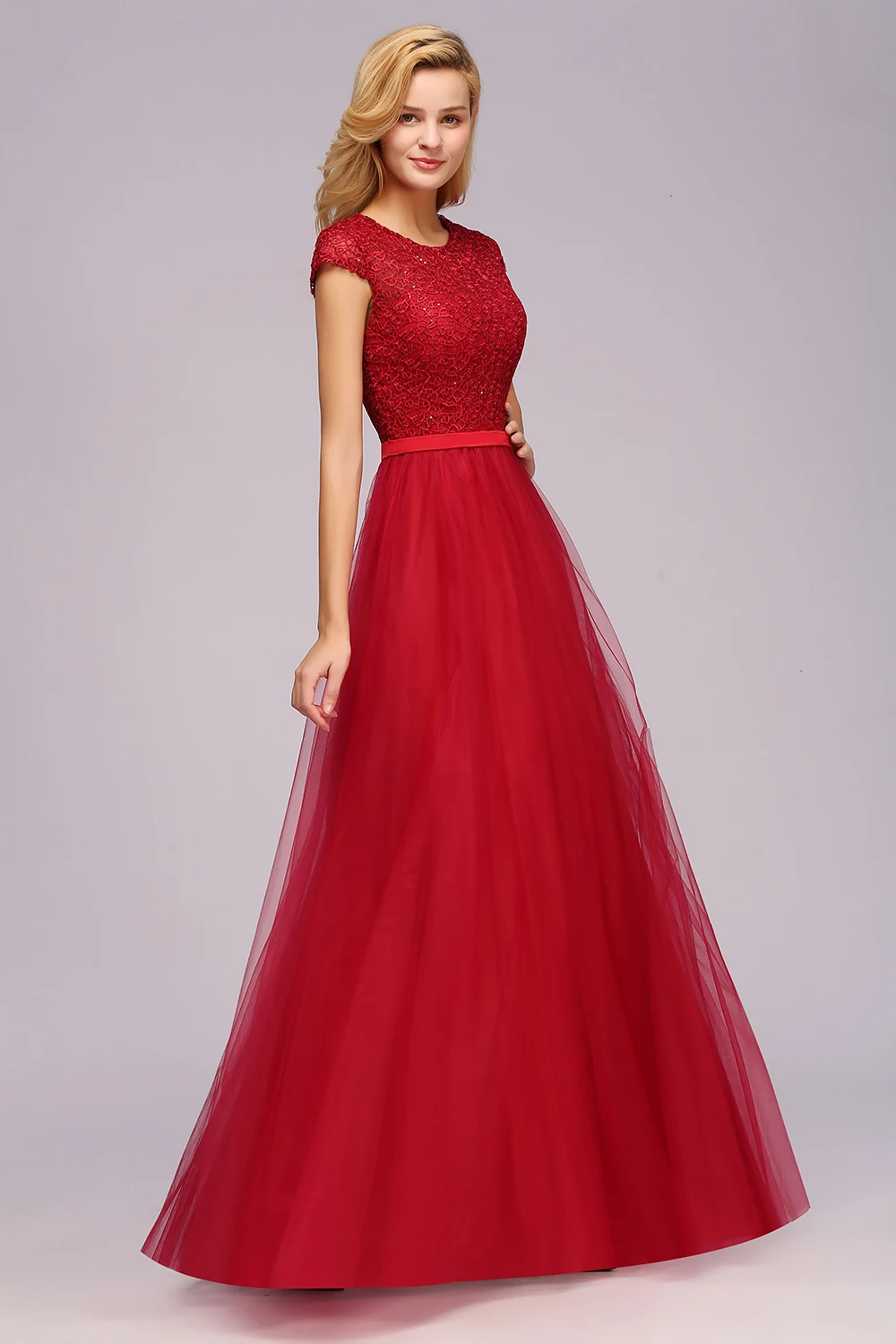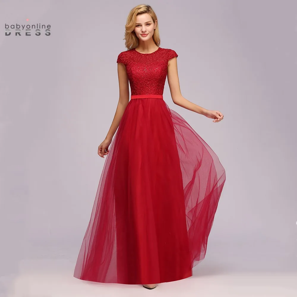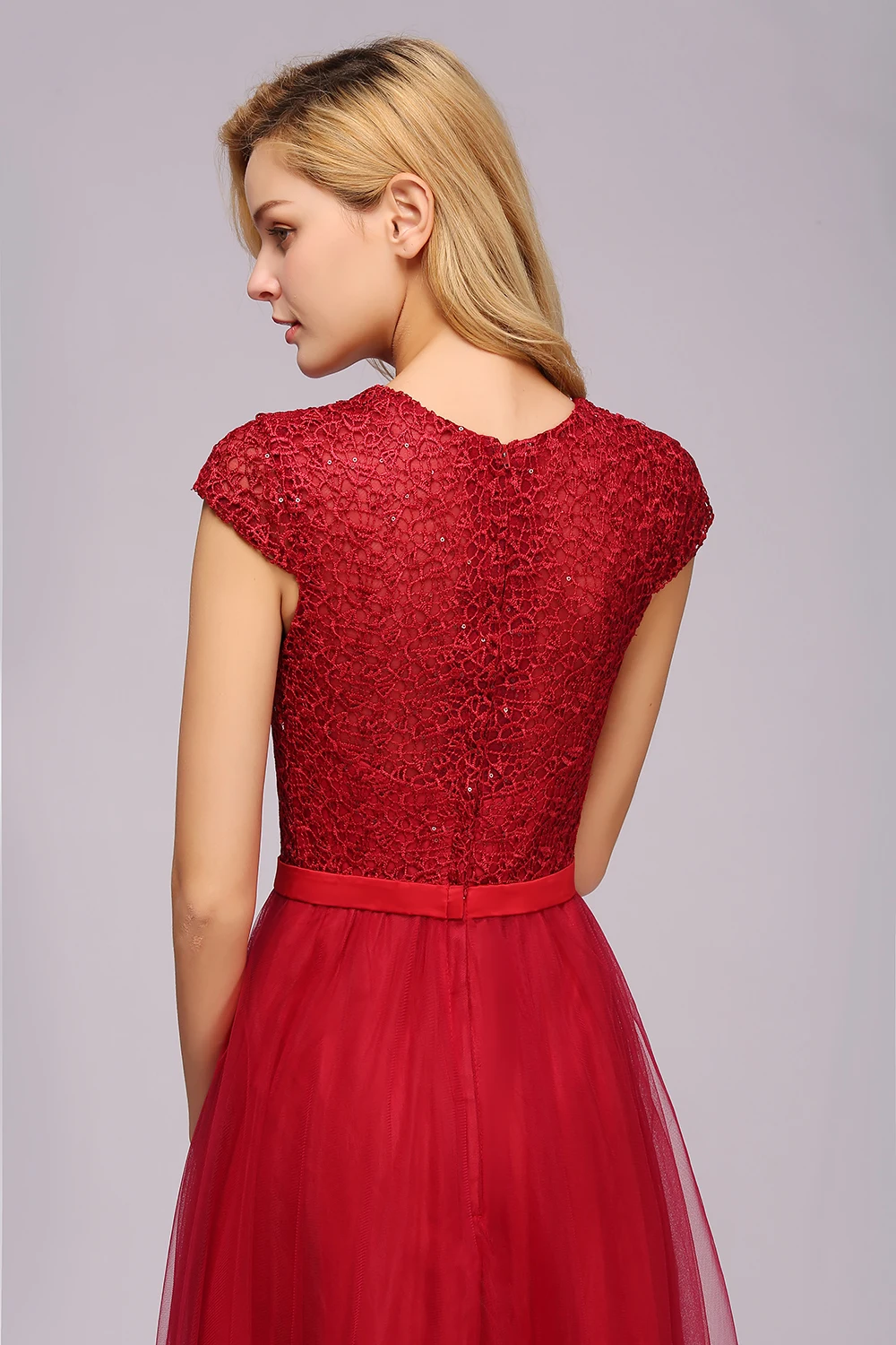 Элегантное шифоновое Красное Кружевное длинное вечернее платье, сексуальное прозрачное Тюлевое вечернее платье
