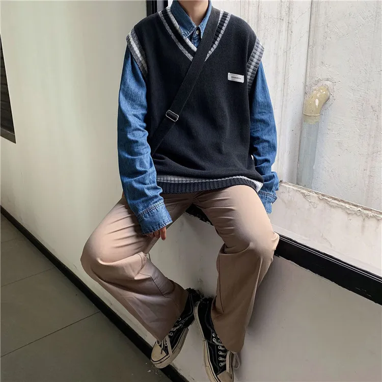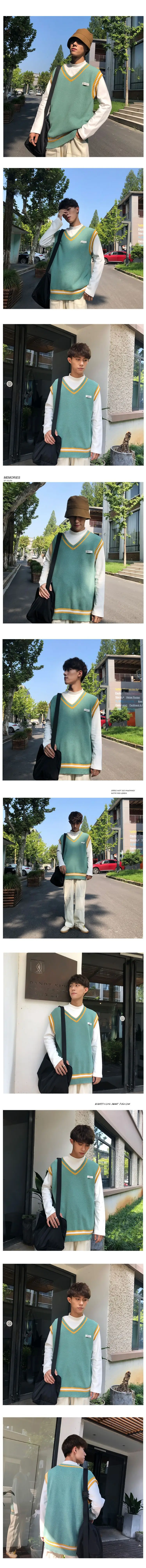 Вязаная жилетка с Для мужчин s v-образным вырезом Harajuku жилеты Д...