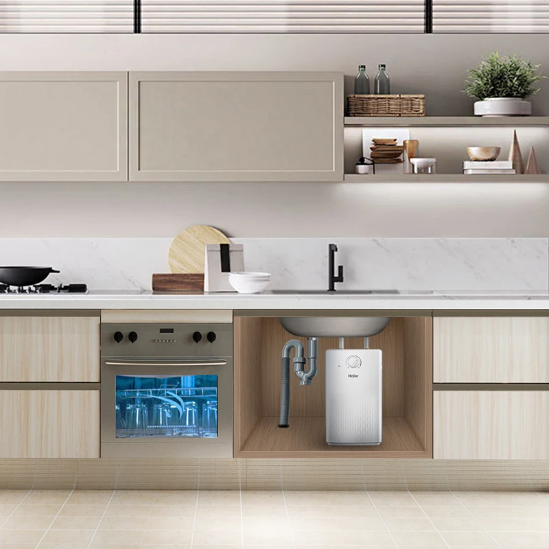 Водонагреватель Haier EC5U EU благодаря высокой мощности (1.75 кВт) и технологии равномерного распределения холодной воды обеспечивает быстрый нагрев. Он оборудован накопительным баком объемом 5 л с эмалированным покрытием, устойчивым к повреждениям и образованию коррозии. Магниевый анод увеличенного размера предназначен для нейтрализации электрохимической коррозии. Для нагрева полного бака требуется около 10 минут.Поворотный переключатель позволяет устанавливать интенсивность нагрева. Комплексная система защиты от поражения током, перегрева и избыточного давления гарантирует высокий уровень безопасности техники. Также в водонагревателе Haier EC5U EU реализована технология защиты от нагрева при отсутствии воды в баке.