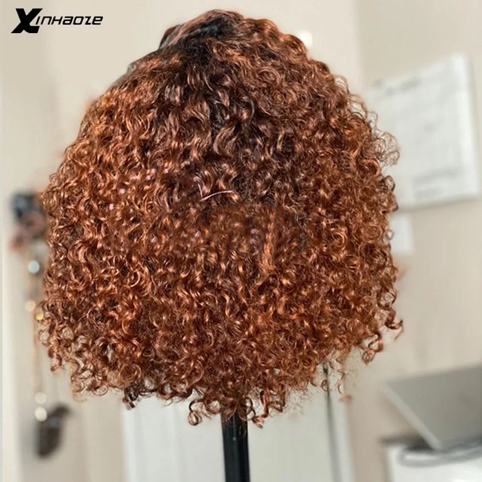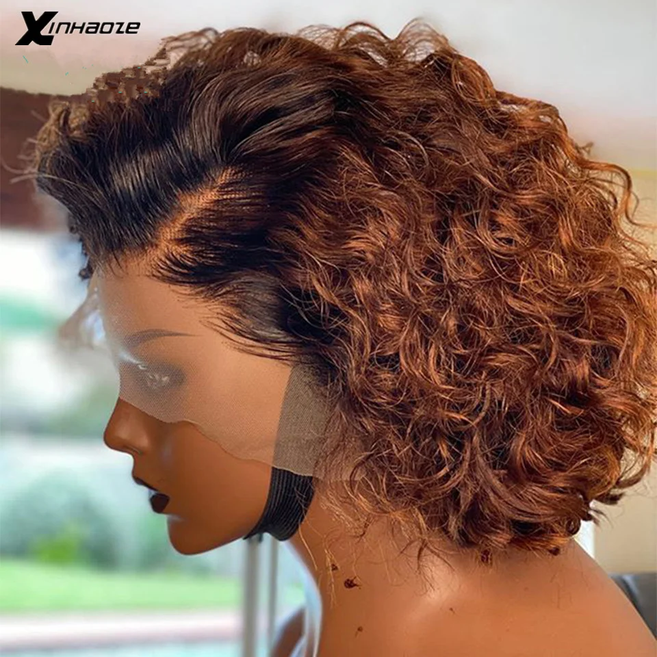 1B/30 Омбре цвет короткий боб парики Кудрявые кудрявые 13x 4 кружева передние человеческие волосы парики Детские волосы предварительно сорванные Remy бразильский коричневый парик шнурка
