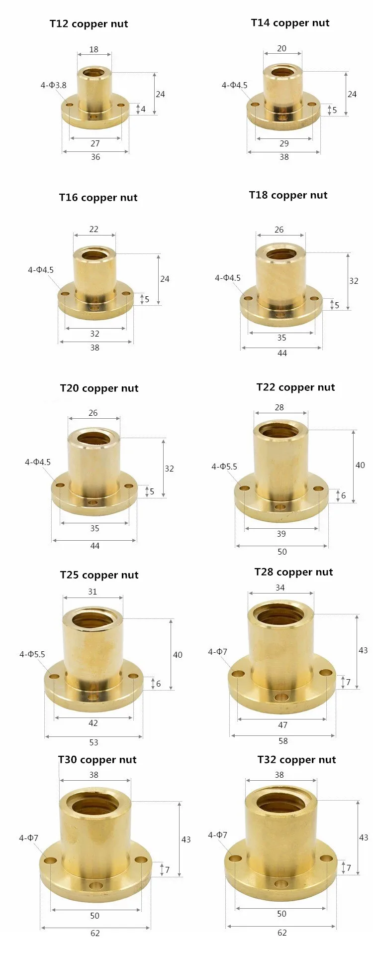2 шт. свинцовый винт T6 + 2 шт. Латунная гайка T6