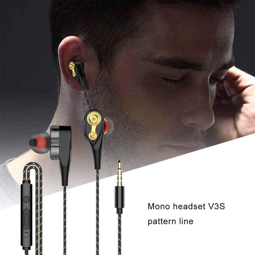 3,5 мм наушники С микрофоном Dual Drive стерео проводные наушники-вкладыши спортивные Портативный вакуумные наушники, наушники-вкладыши один Динамик