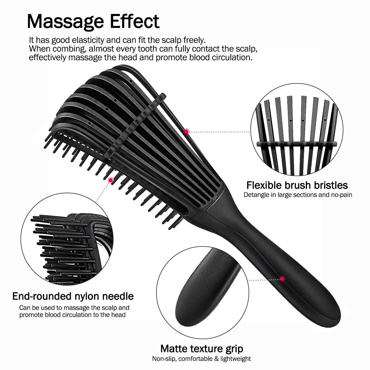 Щетка для расчесывания вьющихся волос, нескользящая резиновая Масса...
