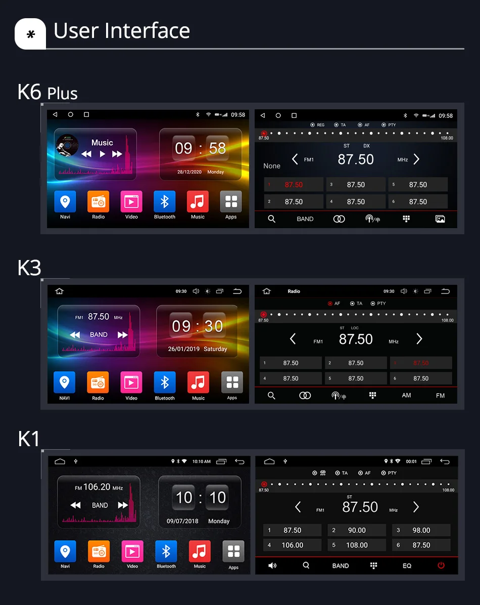 K1-High ------- AC8227L | Android 8,1 |4 ядра | 2G + 16G | 2.5D + TN 1024*600 | Радио 7786 | Усилитель 7388