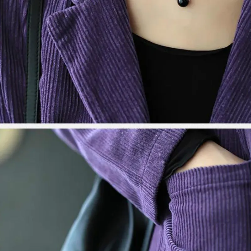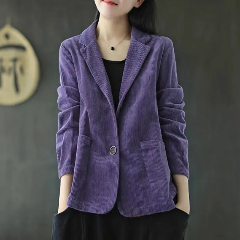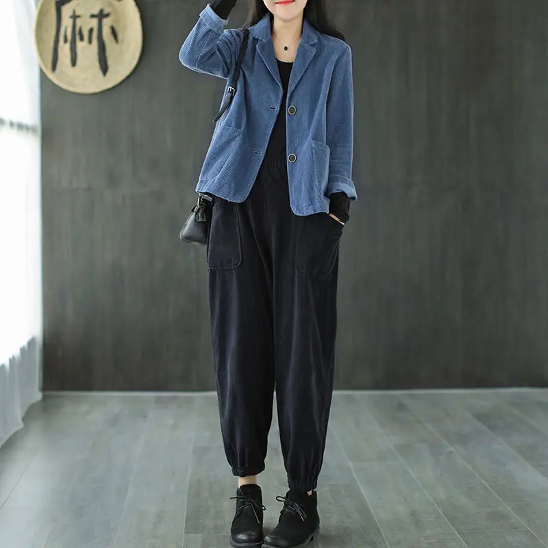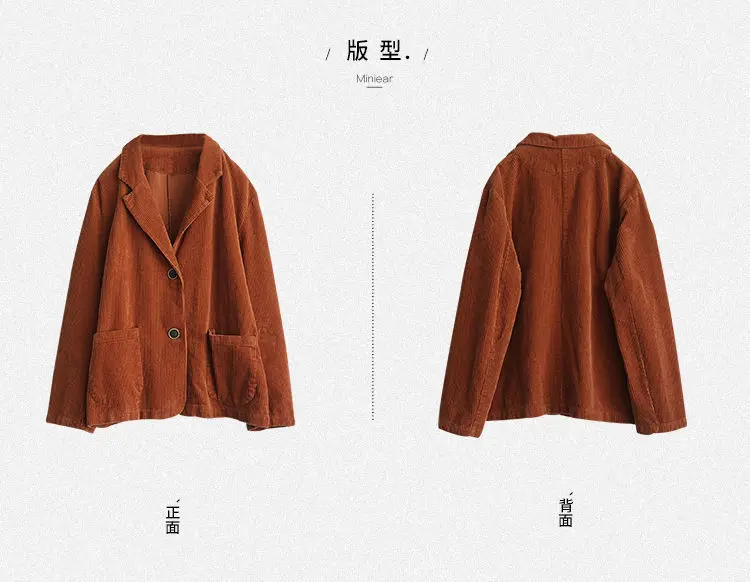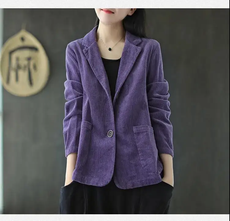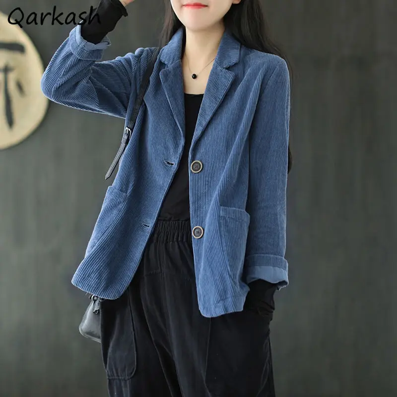 Женский вельветовый пиджак Ulzzang, однотонный винтажный Повседневный стильный пиджак с лацканами, Универсальная мягкая верхняя одежда для весны и осени