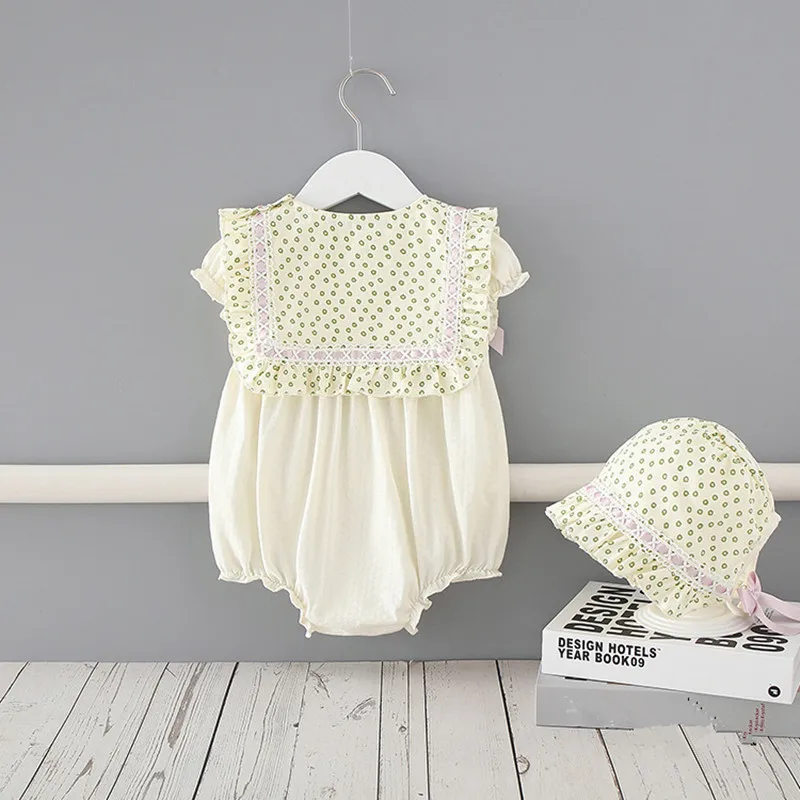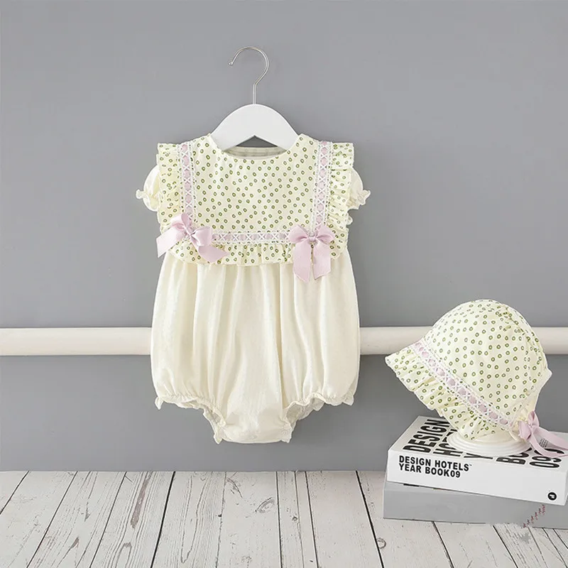 Комплект летней одежды для малышей, детская одежда в горошек для новорожденных, хлопковое боди для девочек + шапочка, От 0 до 2 лет
