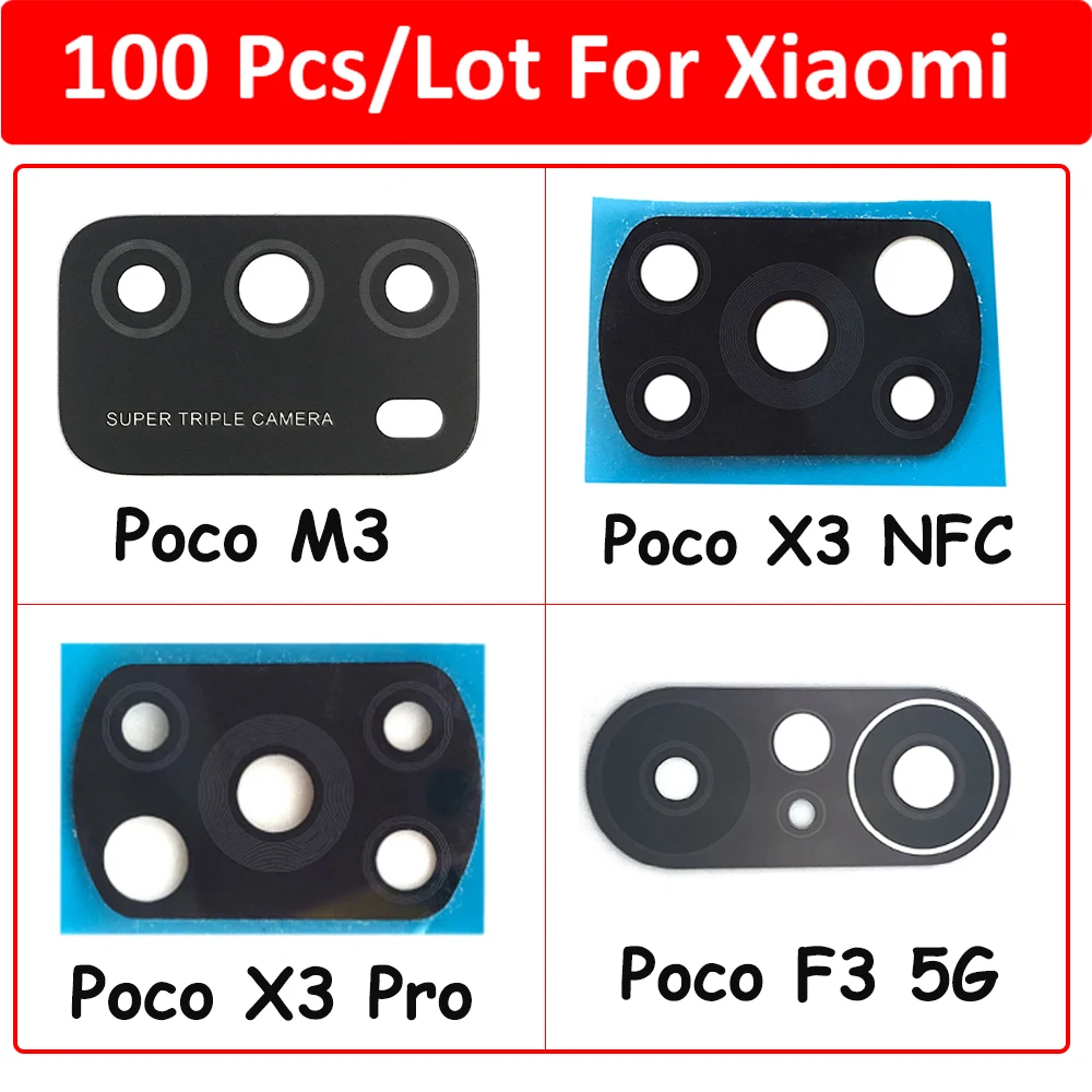 100 шт., 100% оригинальные стеклянные объективы для задней камеры Xiaomi Poco X3 Pro GT M3 F3 5G Poco X3 NFC стекло для камеры с клеем + Инструменты