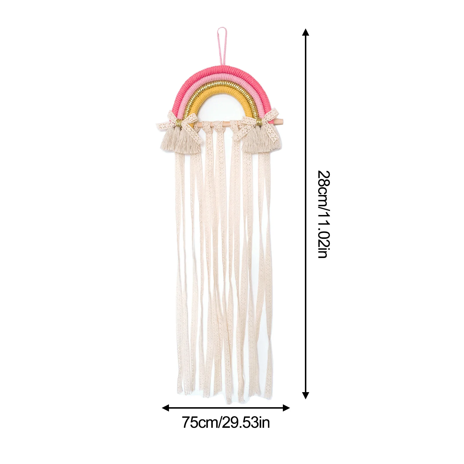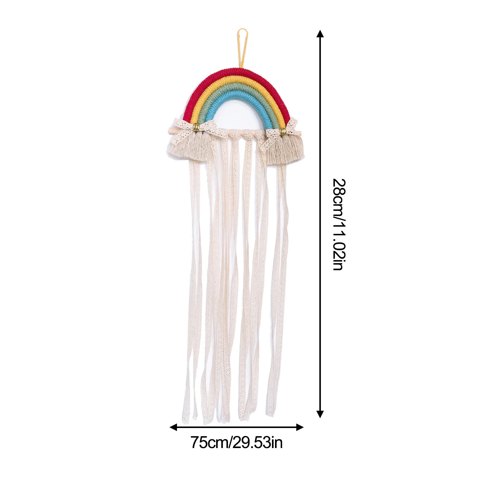 Точки пули:1. Ручные радужные украшения: 4 разных цвета, хороший выбор для сезонного и праздничного украшения или детской комнаты.2. Изысканное украшение: изысканное украшение ручной работы из хлопковой нити и веревки. Без шпильки.3. Хранение заколки для волос: вы можете прикрепить заколки для волос для маленьких девочек к кистям радужных украшений, во время хранения вы можете достичь потрясающих визуальных эффектов.4. Размер изделия: около 75*28 см, натуральные материалы, передают ощущение минимального-ism и создают расслабляющее ощущение в любой комнате.