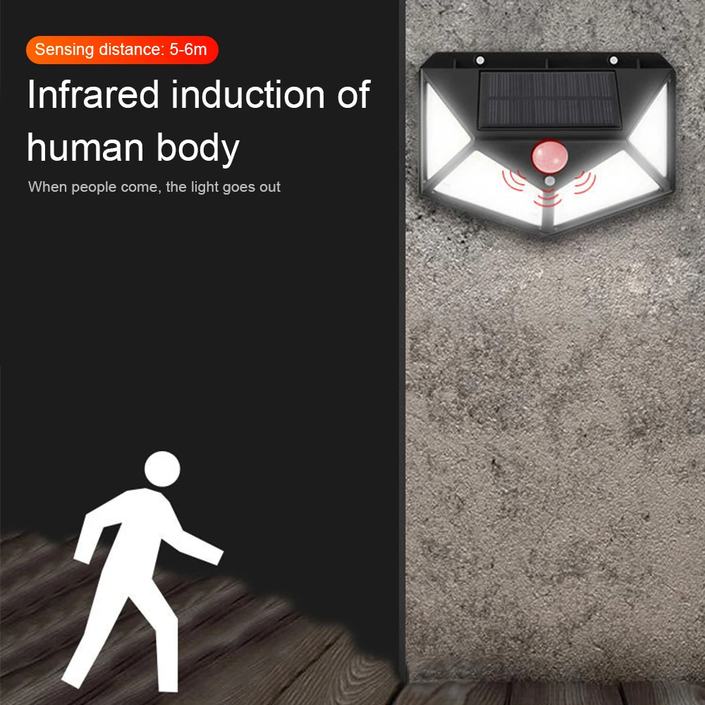 Садовый светильник 3 режима 100 светодиодный солнечный светильник движения PIR Сенсор украшения настенный светильник уличный Водонепроницаемый садовый светильник
