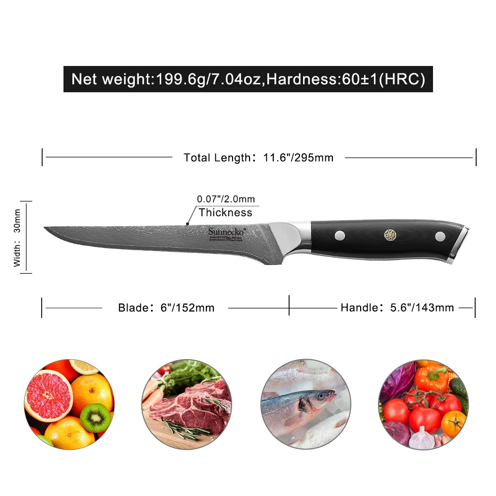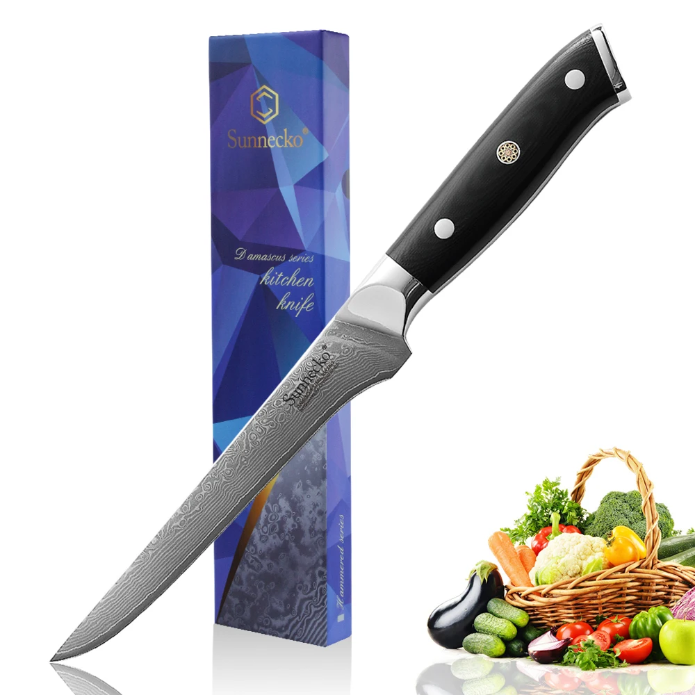 Нож для нарезки косточек SUNNECKO VG10, японские кухонные ножи с лезвием из дамасской стали, рукоятка из G10, инструменты для готовки