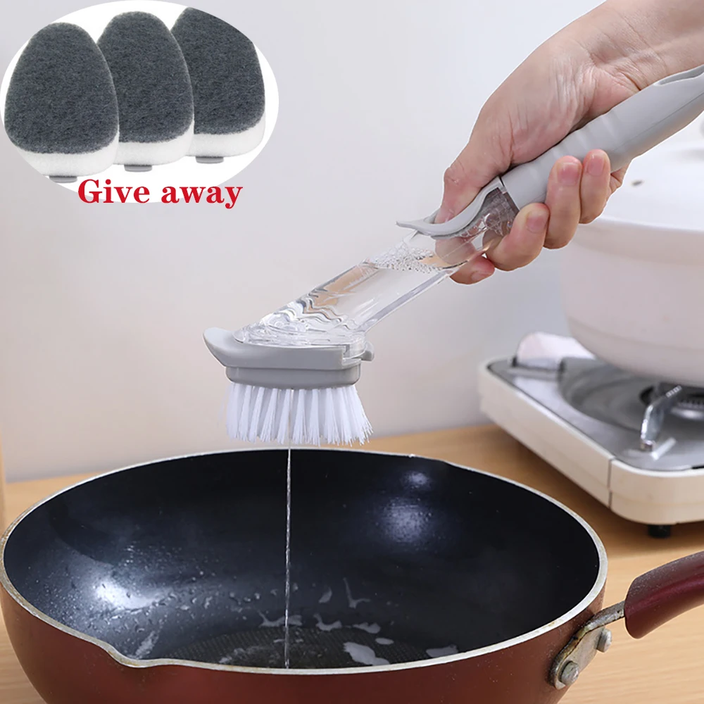 Инструменты для чистки кухни 2 в 1, щетка для чистки с длинной ручкой и съемной щеткой, диспенсер для губки, Набор Щеток Для Мытья Посуды