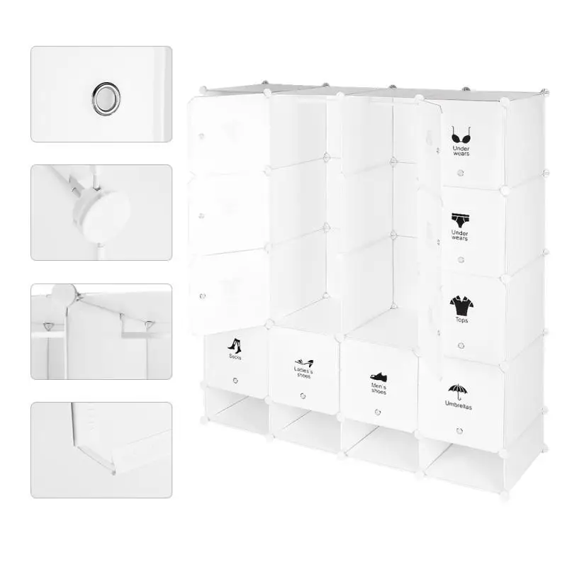 Шкаф для одежды шкаф 4-секционный измельчитель для специй пластиковый шкаф с обувной шкаф Водонепроницаемый одежды шкафчик для хранения документов (современная мебель для спальни HWC